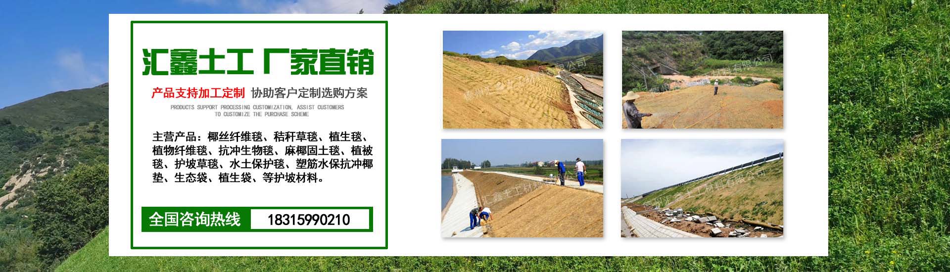 德州匯鑫土工材料有限公司是一家專(zhuān)業(yè)生態(tài)護(hù)坡產(chǎn)品、技術(shù)服務(wù)及施工為一體的綜合性企業(yè)。公司主要生產(chǎn)銷(xiāo)售植物纖維毯、植生毯、椰絲毯、抗沖生物毯、生態(tài)毯、秸稈纖維毯、麻椰固土毯、塑筋水保抗沖椰墊、生態(tài)袋、植生袋等各種護(hù)坡材料,產(chǎn)品廣泛應(yīng)用于:高速公路邊坡綠化、山體邊坡綠化護(hù)坡、河道邊坡、人工湖邊坡防護(hù)及其他生態(tài)邊坡治理等工程。經(jīng)廣大工程單位使用證明,產(chǎn)品質(zhì)優(yōu)價(jià)廉,施工方便,售后服務(wù)好,得到廣大客戶(hù)的一致好評(píng)。 "為客戶(hù)提供優(yōu)質(zhì)產(chǎn)品及服務(wù)"的宗旨, 熱誠(chéng)希望攜手各界朋友,共鑄造彼此輝煌。 ...