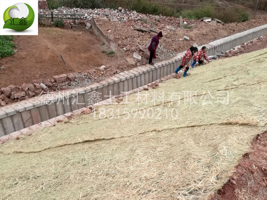 秸稈纖維草毯的施工分為六步驟:清除坡面雜草、平整坡面、挖溝、(播種)鋪設(shè)草毯、覆土、澆水。清除坡面雜草。在施工前3-4天對坡面進(jìn)行噴灑除草劑處理,選擇不封地面的除草劑。平整坡面:主要是清除坡面上的雜草、草根、施工垃圾、較大的石塊等不利護(hù)坡草籽生長的東西。將這些清除后要用鐵耙將坡面摟平,這樣有利于肥料均勻的掛載坡面,不致全部滑落到坡腳,使得秸稈纖維草毯更好地貼在坡面上。挖溝:主要作用是起到固定草毯。溝的規(guī)格是30厘米寬*50厘米深,長度根據(jù)坡面而定。播種:根據(jù)種子量的多少,植物的特性,可采用撒播法、條播法、點(diǎn)播法等,床面壓住后及時(shí)覆蓋草毯,以利保墑。